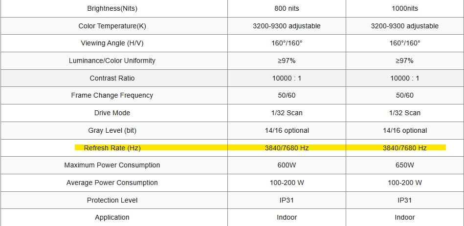 В мире светодиодных экранов оперируют гораздо более высокими числами, чем в мире домашних телевизоров или мониторов. Вот основные категории, на которые делят частоту обновления :